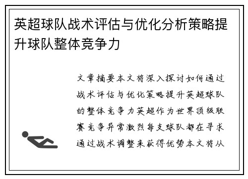 本文将从西甲战术体系、攻防转换与球队配置的关键因素出发,深入探讨西甲联赛的战术演变和发展趋势。西甲联赛作为世界足坛最具魅力的联赛之一,其战术体系多样而复杂,涉及的战术元素丰富且高度发达。在这篇文章中,我们将从四个核心方面进行分析:一是西甲战术体系的基本结构与特点,二是攻防转换在西甲中的关键作用,三是...